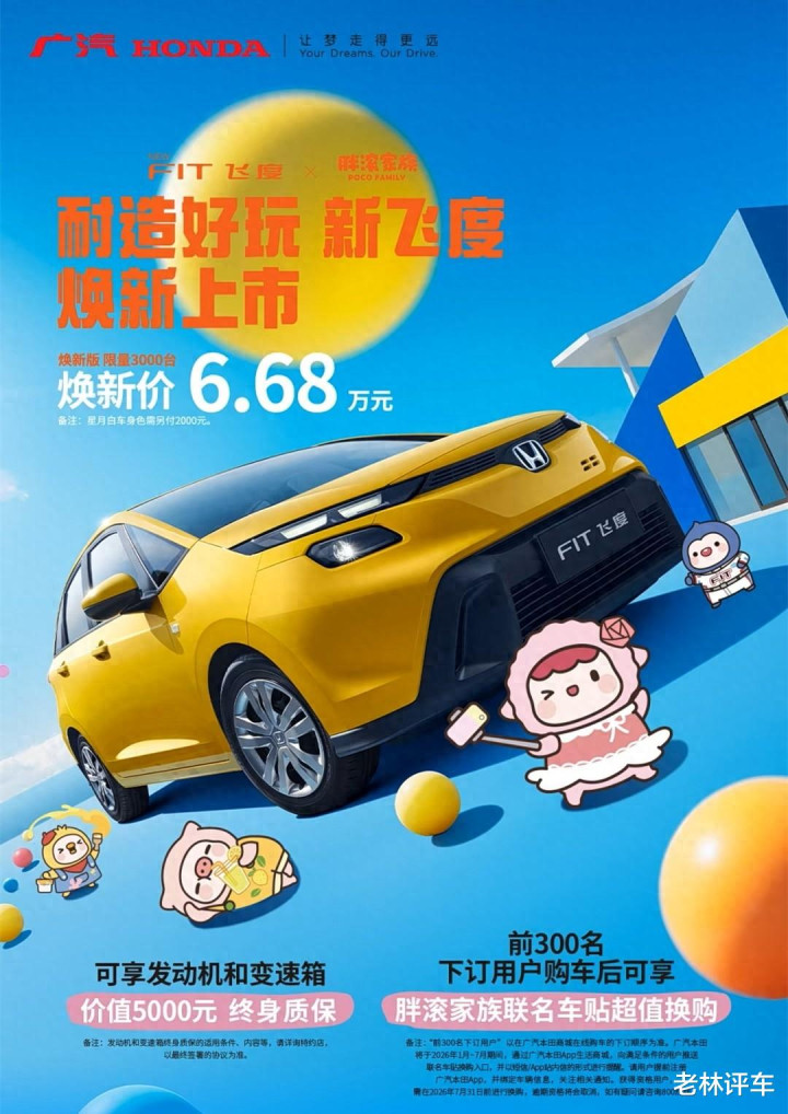 不过广汽本田并未放弃飞度,于1月15日推出了2026款车型(1.5L CVT焕新版),新车只有一款车型,限时售价6.68万,并在全国限量发售3000台,同时可享发动机/变速箱终身质保。