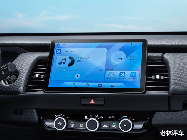 内饰部分,飞度也在与时俱进,7英寸液晶仪表盘+10.1英寸中控屏幕的组合起码看上去不廉价,不过中控屏幕的功能不是很丰富,好在是可以通过CarPlay、CarLife、HUAWEI HiCar连接智能手机来拓展功能。同时全车提供15处储物空间。